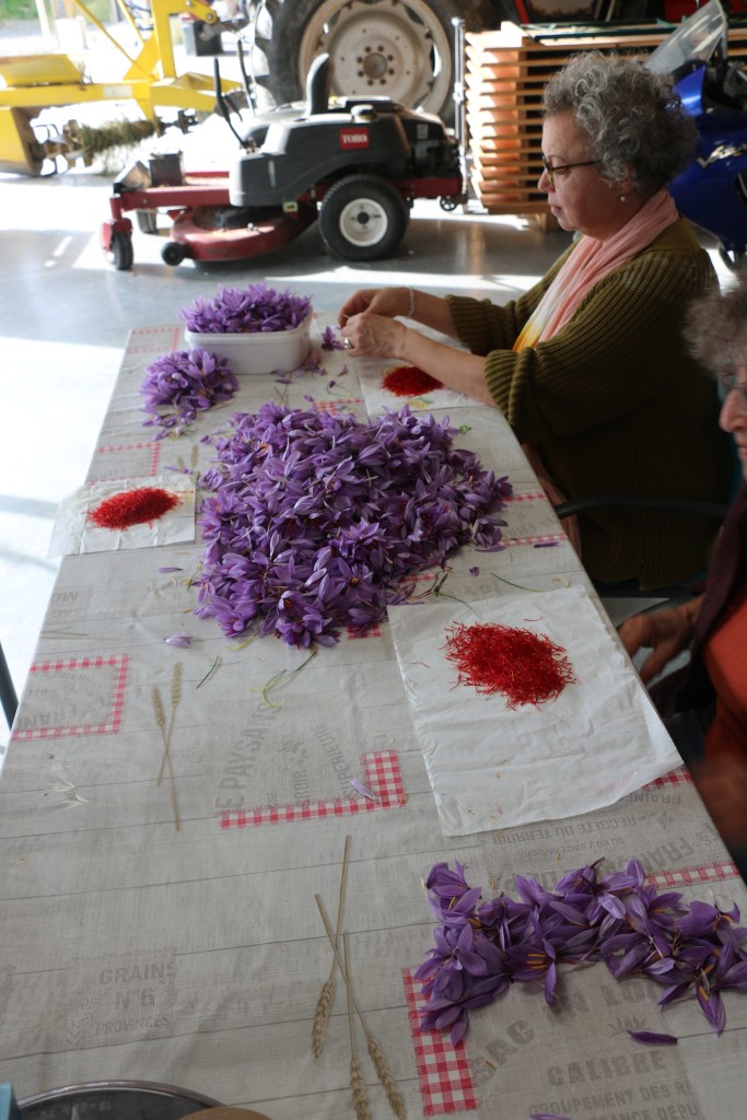 We had a good look around and then took the scenic route home, a route that Ker and KT had clearly never taken before. The almost single track road through many farms was charming. They did manage to find a flour mill, well it was a lady with a grinder, where Ker gets his flour to make his sourdough. Yum, we can hardly wait. As a bonus, the lady and 2 friends were in the process of picking the stamens from Crocus flowers, to be dried as saffron and no doubt sold for a good sum.