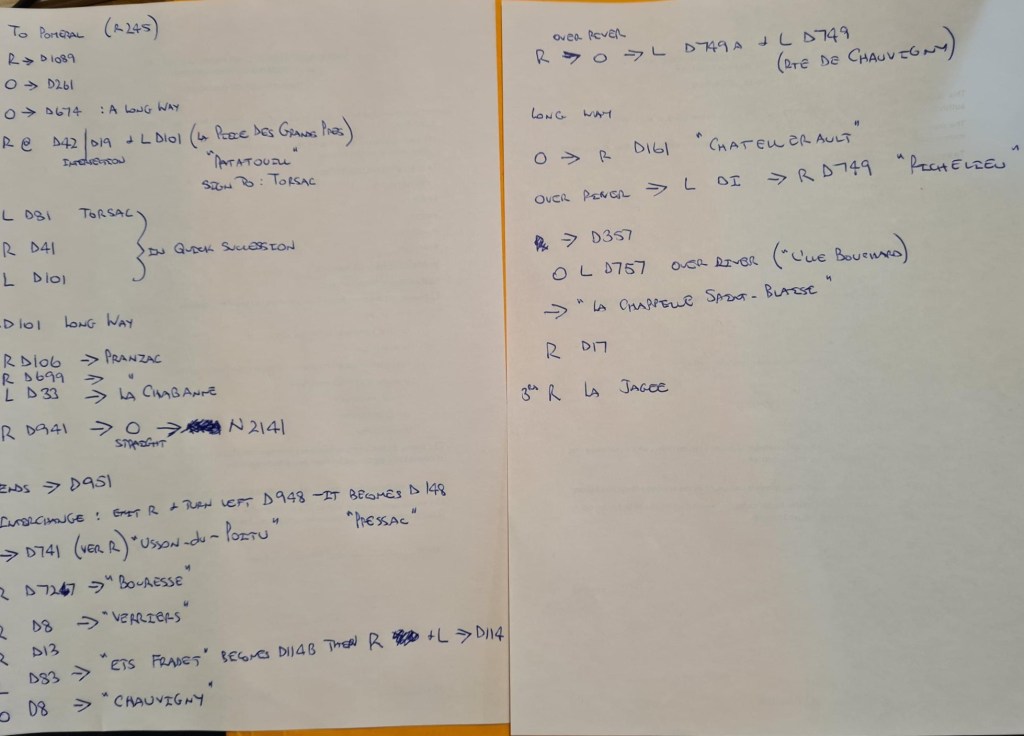 Needless to say, we started back tracking before we reached Poitiers trying to recover our route, so as agreed, it was time to find the N10 motorway. Luckily, as we began to look for it, it appeared above us. No hesitation and up we went……but were we heading south or north ? Good question. After watching our “blip” on goggle maps we determined that we were in fact heading north. Phew !!